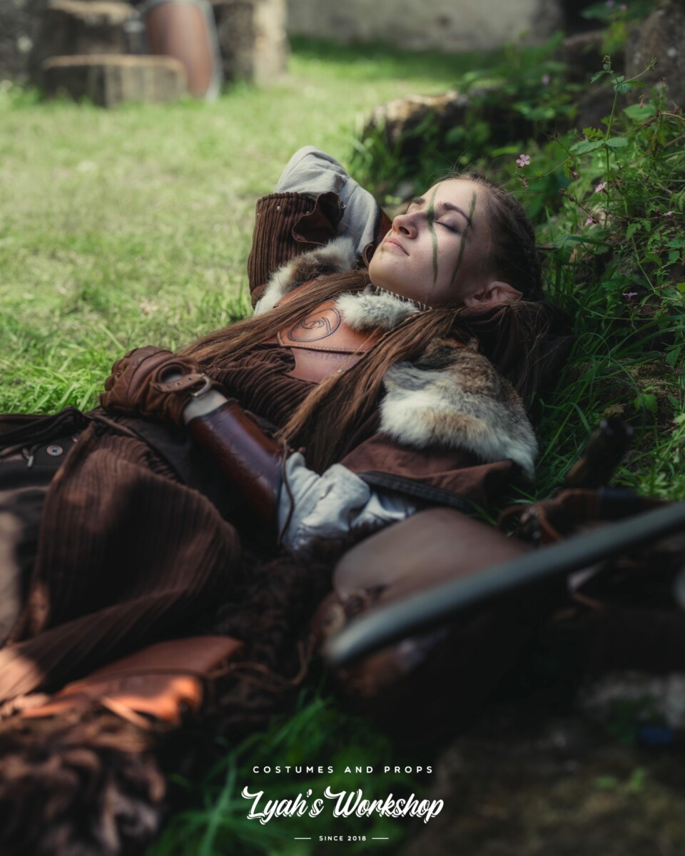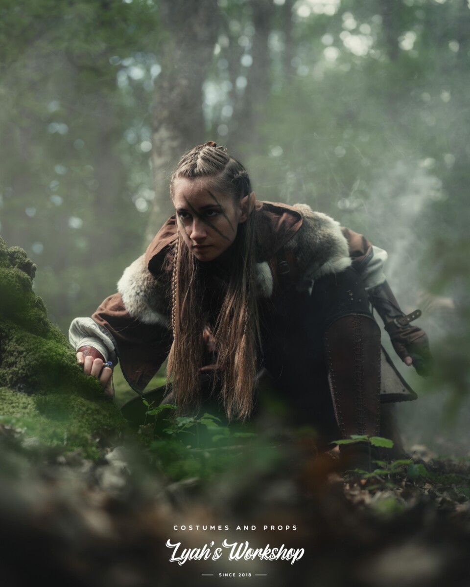 Personnage original de ma création, Lya était à la base un personnage que j’avais créé en assemblant différents éléments pour me faire un costume médiéval/fantasy. Au fil des années, et avec la découverte du parc RustiK, j’ai donné vie à ce personnage en imaginant pour elle un passé, un caractère, des valeurs.